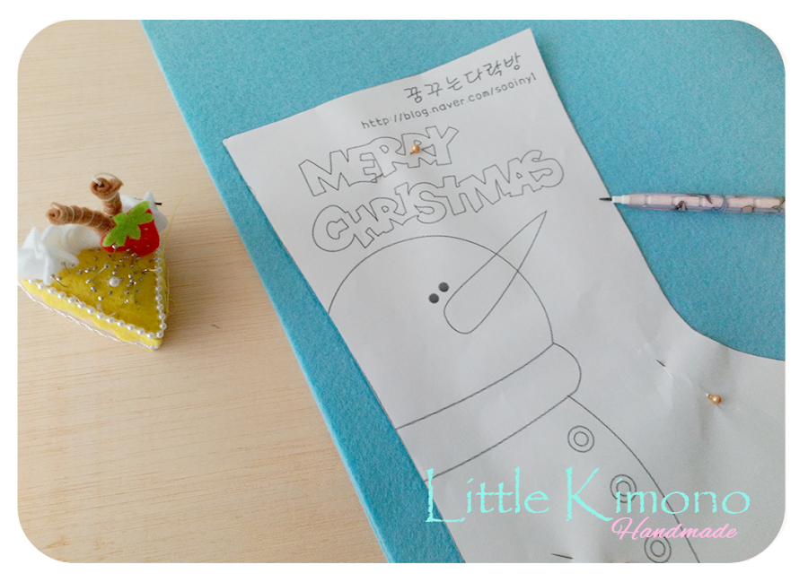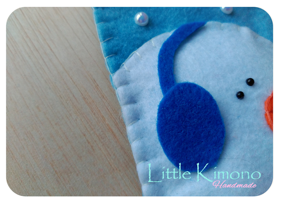 7. Por ultimo podemos agregar algún detalle si lo deseamos, yo pegué unas perlas para scrap a modo de nieve y unas orejeras para que nuestro muñeco de nieve estuviese mas calentito ^_^