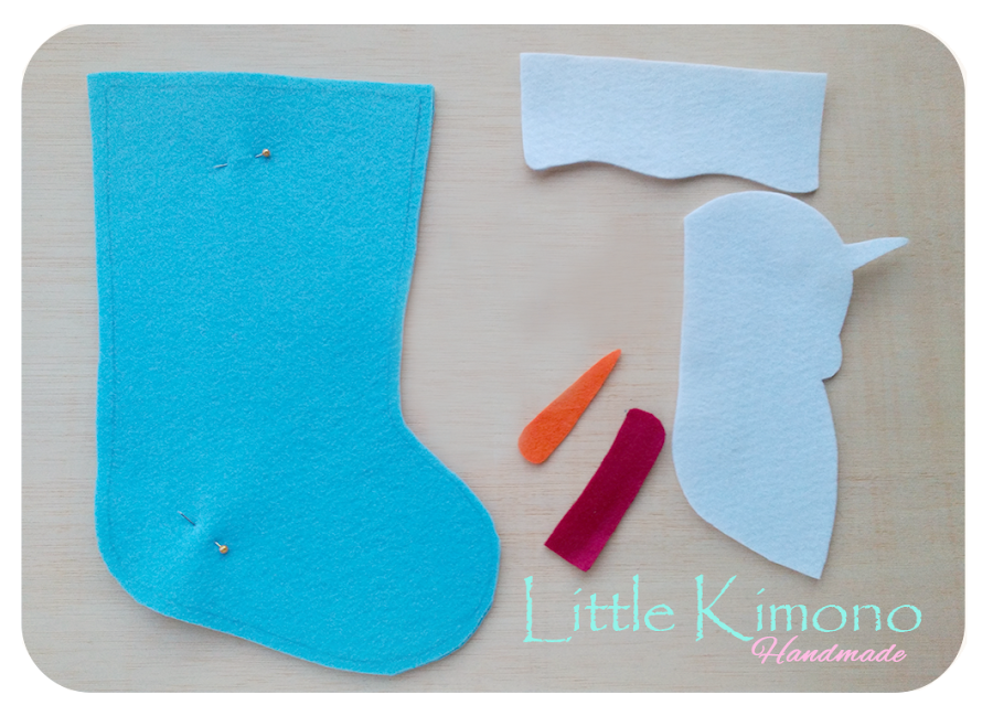 2. Recordad que para el calcetín nos hacen falta 2 piezas iguales y 1 pieza para el muñeco de nieve ;)