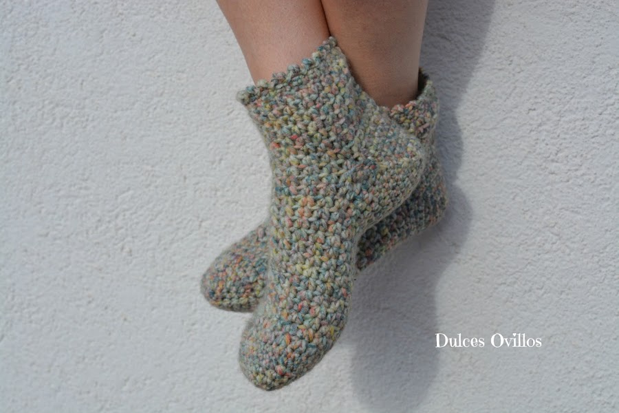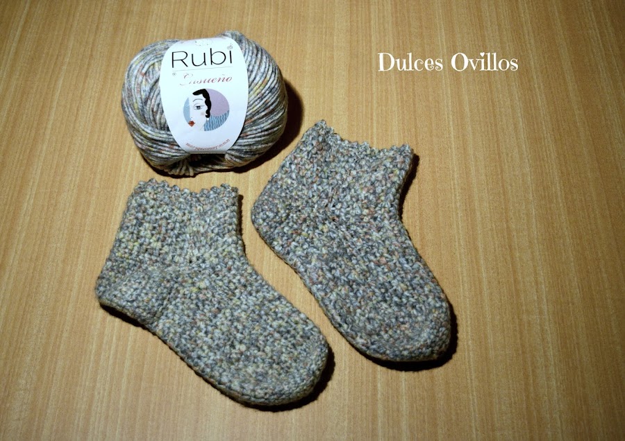 Nota : Utilizando un ganchillo de 3 mm salen unos calcetines para talla 36. Puedes utilizar un ganchillo más grueso y te saldrán más grandes. Con dos ovillos tienes más que suficiente.