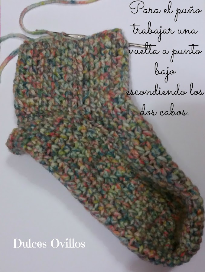 Se hacen a punto medio alto, y la puntera y el talón a punto bajo; con unos piquitos en el puño. La dificultad estriba en retomar los puntos una vez tenemos hecho el talón. Bueno, te detallo el tutorial para que me entiendas mejor: