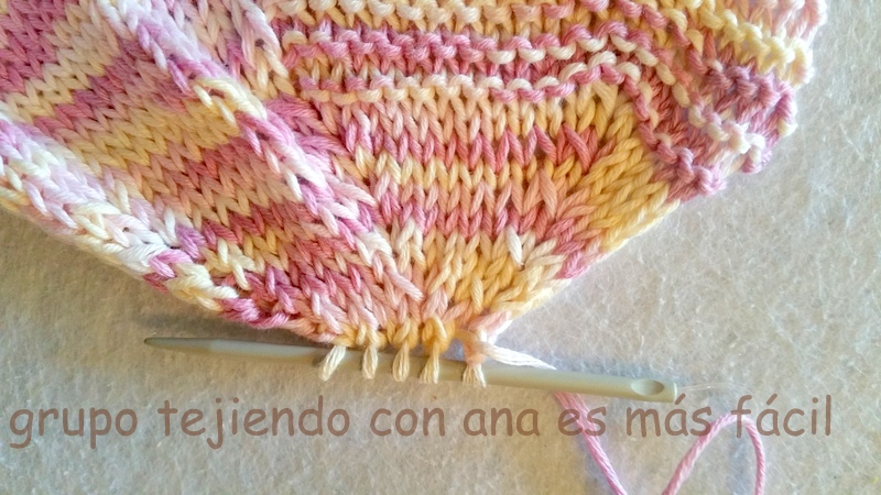 -PUNTERA:Ahora vamos a tejer LA PUNTERA, asi: (las vueltas impares del revés)