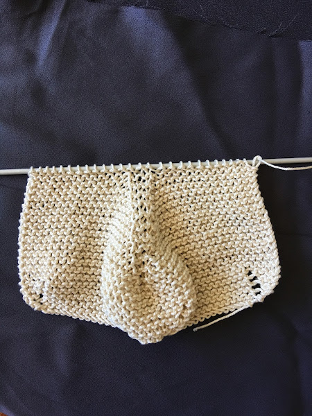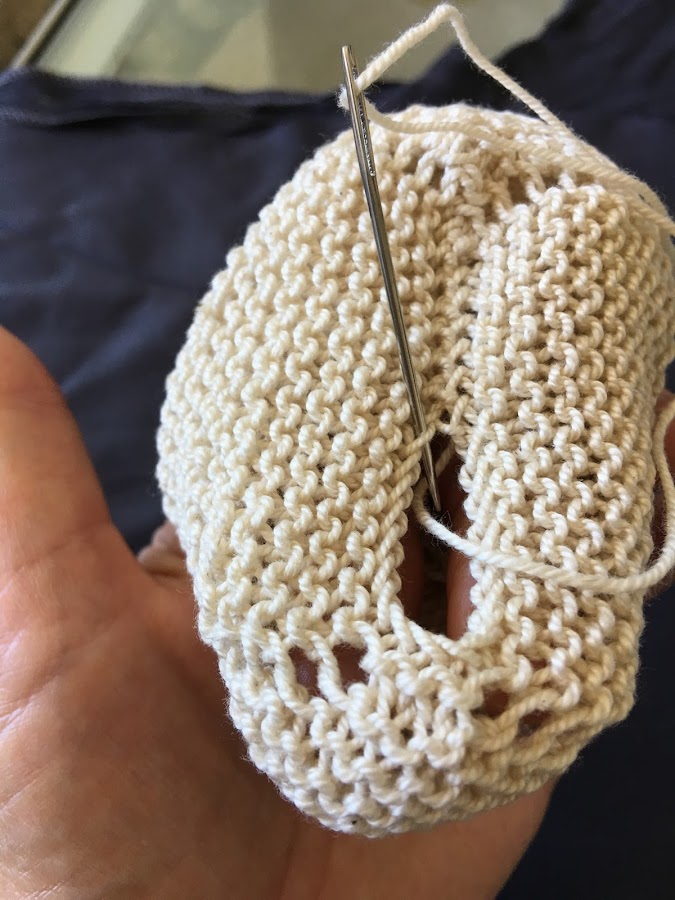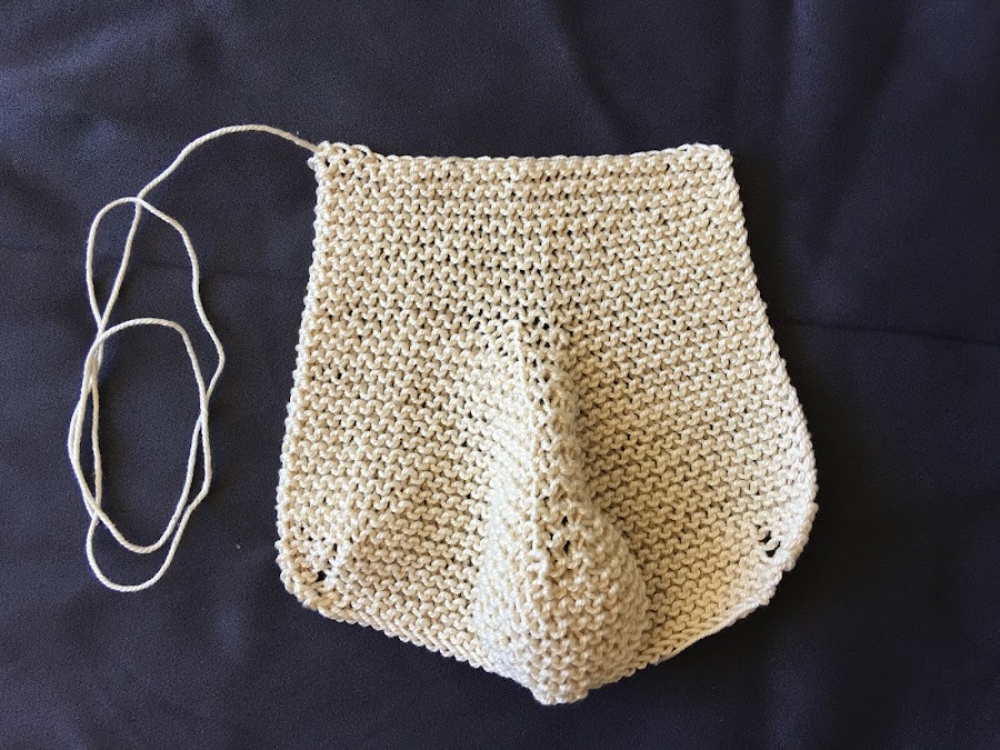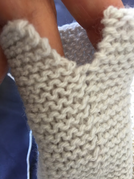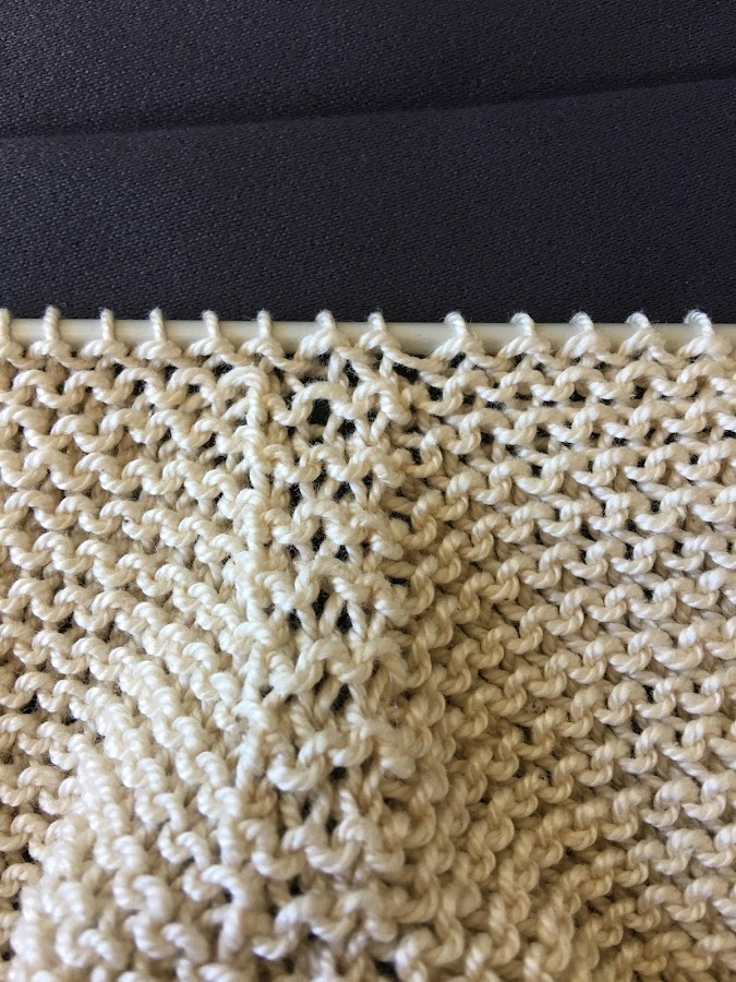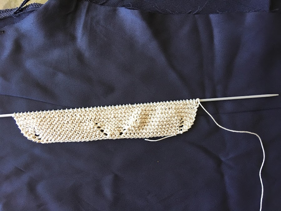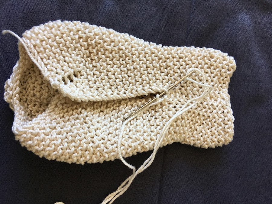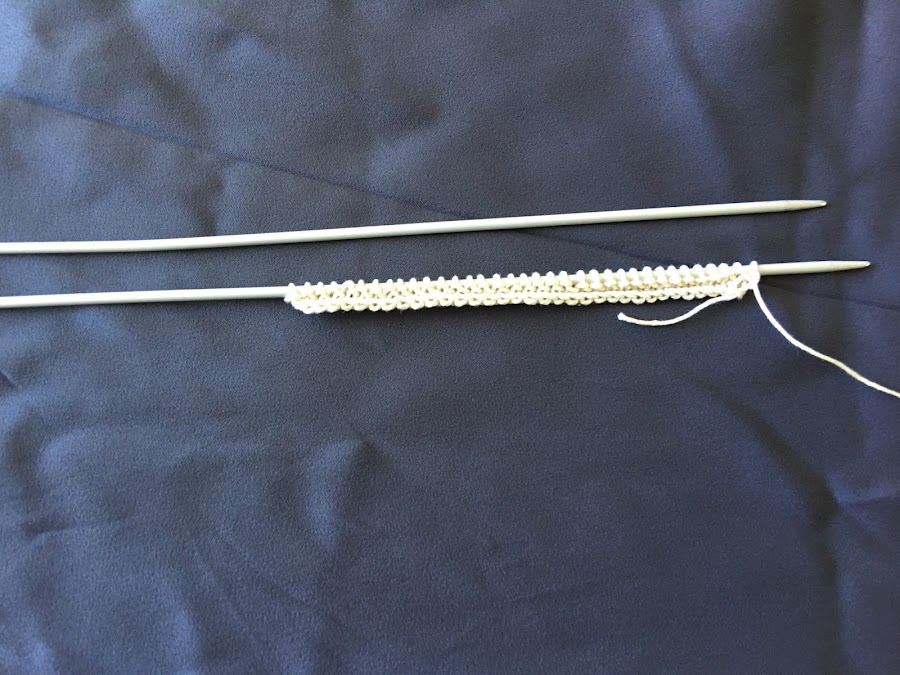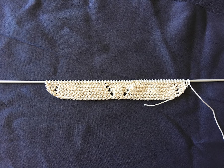 Continúa tejiendo del derecho los 27 pnts hasta que tengas un total de 3,5 cm contando