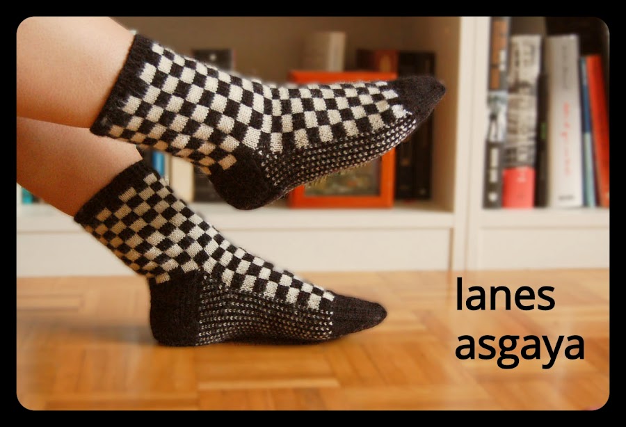 Ya sabéis lo mucho que me gusta tejer calcetines, así que cuando mi hija me pidió que le hiciera unos (muy muy raro en ella, porque nunca quiso ninguno, decía que le daban mucho calor), rápidamente me puse a ello. Tiene unos calcetos de cuadros rosas y blancos que le encantan y me preguntó si podría hacérselos de cuadros blancos y negros. Pues por supuesto