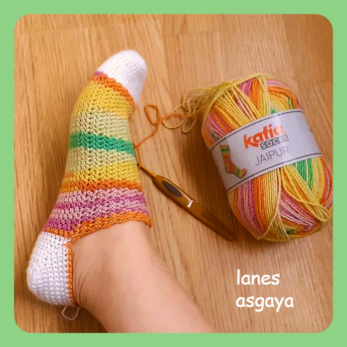 Parece mentira que con la cantidad de calcetines que tejí, todavía no haya hecho ninguno de ganchillo. Así que, otra vez, encuentro ventajas en el confinamiento. Estoy aprovechando el tiempo un montón...