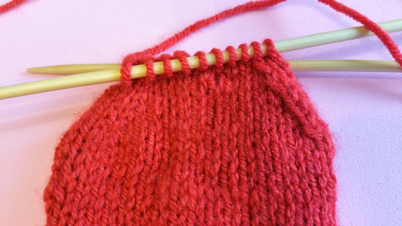 CONTINUAR RECOGIENDO AL FINAL DE CADA VUELTA 2 P. de los dejados en espera, hasta que todos se hayan tejido, terminando con 1 vuelta del revés y 14 puntos en nuestra aguja