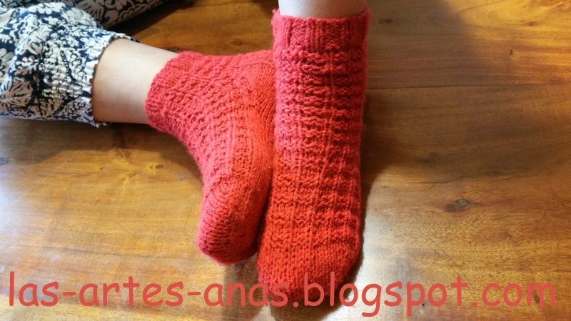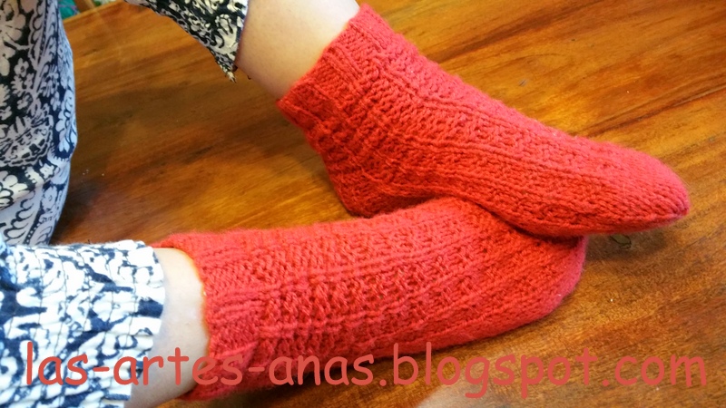 LA CAÑA Y LA PERNERA con el largo a vuestro gusto, MAS CORTO O MAS LARGO, TRABAJANDO EN CIRCULAR, LUEGO,DEJAMOS DE TEJER EN CIRCULAR y dividimos la labor TRABAJANDO EL EMPEINE, con la mitad de los puntos a 2 agujas, O SEA 22 PUNTOS, yo he reforzado LA SOLAPA DEL TALÓN CON PUNTO elástico en relieve: