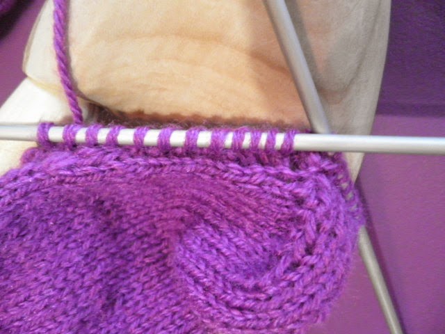 TRABAJAR estos 22p. EN VUELTAS DE IDA Y RETORNO, deslizando en todas laS VUELTAS EL PRIMER PUNTO sin tejer,cuando tengas 22 vueltas, hacemos las disminuciones para la VUELTA DEL TALÓN,: