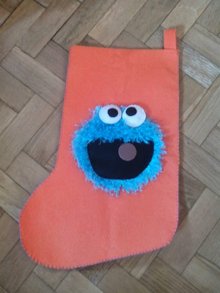 Ya sólo falta coser la pieza que va a ser el gancho del calcetín en la parte superior y tenemos listo nuestro calcetín navideño de El Monstruo de las Galletas.