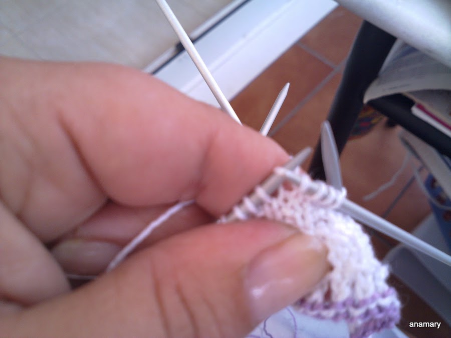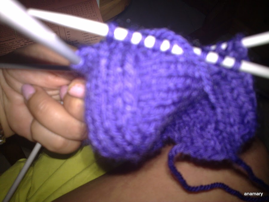 montamos los puntos necesarios para el calcetín ,yo los monto en dos agujas y le hago el elástico,al terminar el elástico reparto los puntos en las cuatro agujas y comienzo a tejer el alto del calcetín,
