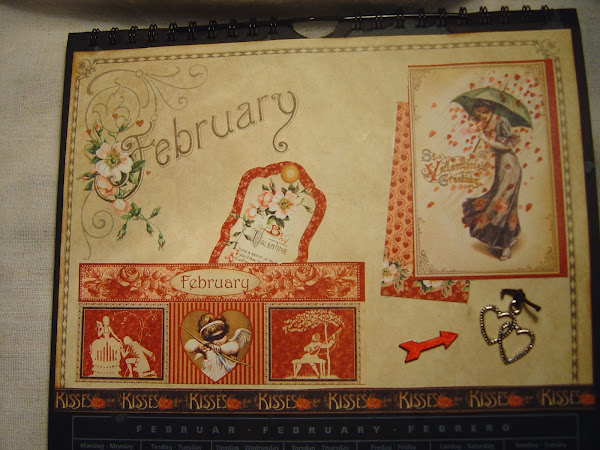 Vengo con la página de Febrero terminada, el mes del amor!!! y así lo he reflejado a la hora de decorarlo.