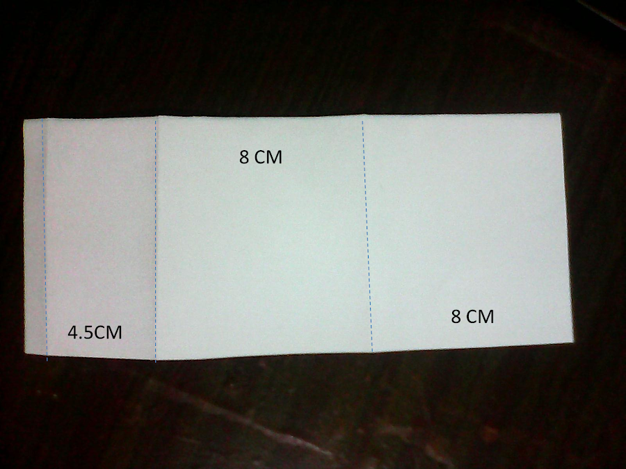 En un una cartulina o cartón grueso vamos a cortar un rectángulo de 8 x 22 y lo recortamos haciendo las siguientes marcas y después marcando los dobleces.