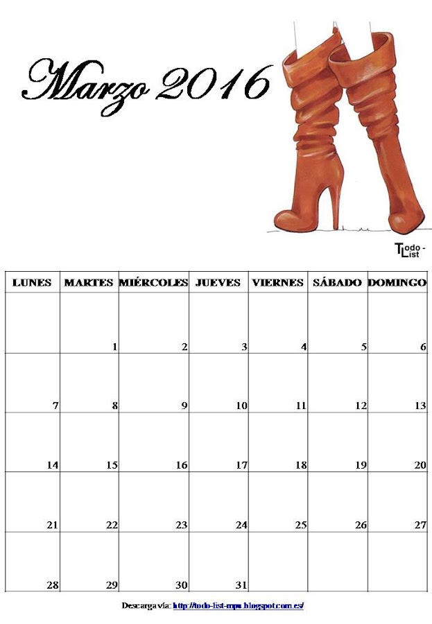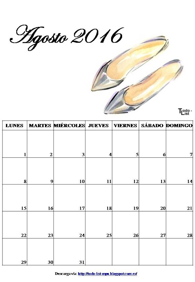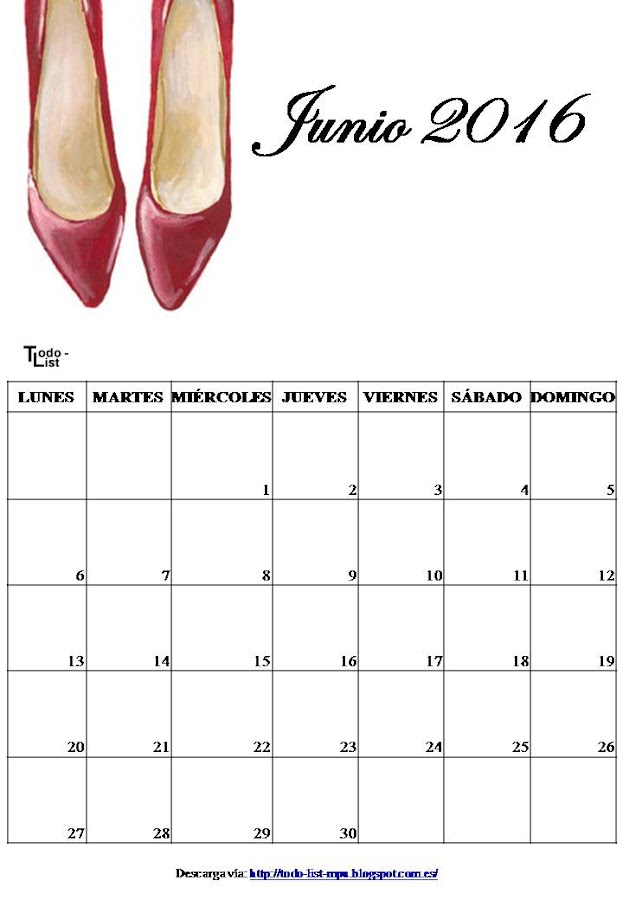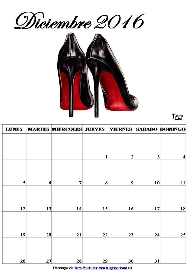 Buscando algún calendario para descargar, se me ocurrió que lo mejor era que hiciera yo el mio propio. Al final me decidí por los zapatos que, aunque no use muchos tacones por mis problemas de espalda, me encantan y por eso mismo... no todos son tacones.