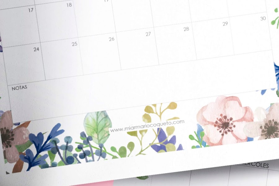 Espero que os haya gustado el diseño y que este calendario os sea útil durante todo el curso. He de aclarar que las flores no las he dibujado yo, son unas acuarelas que he obtenido de un diseño gratuito de Freepik y las he combinado hasta crear el diseño que me gustaba.