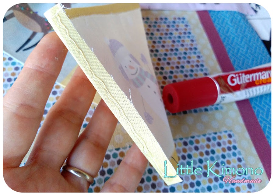 Para el cartel podemos usar entretela adhesiva patchwork dos caras, así no se deshilacha ;)