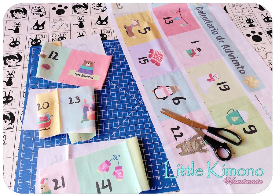 Pero también tienen una sección dedicada a las labores donde podréis encontrar diversos paneles para bordado normal, bordado sashiko, patrones de costura y paneles ya impresos listos para armar como guirnaldas y cojines, yo me he enamorado de todos ^^ pero en esta ocasión os traigo el del calendario de adviento con el letrero en castellano o catalán que podéis encontrar en su tienda ;)