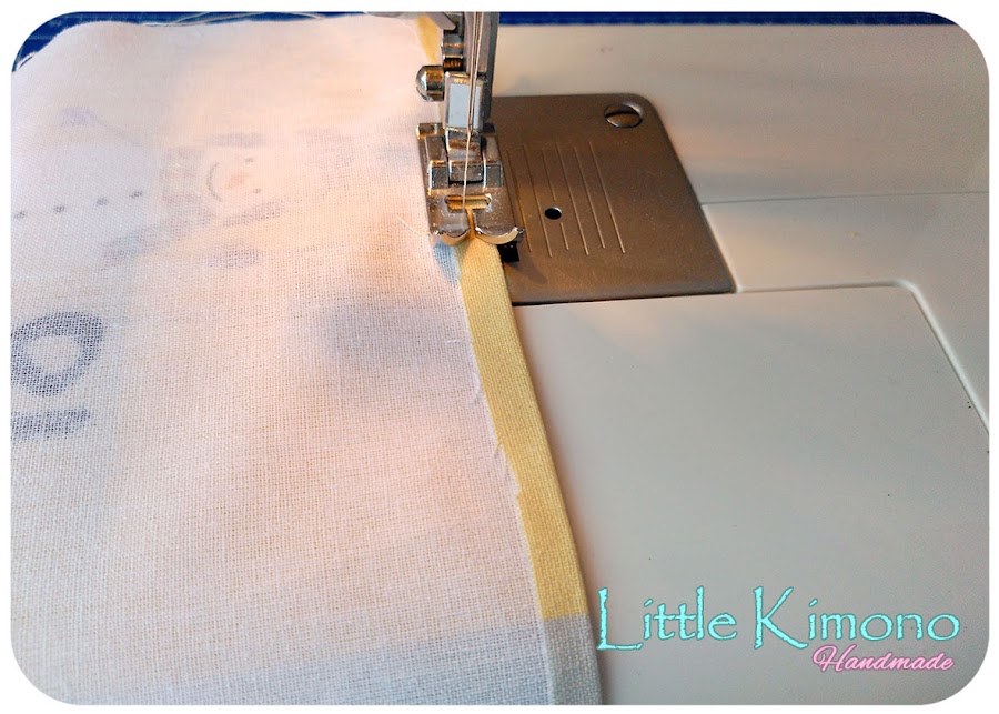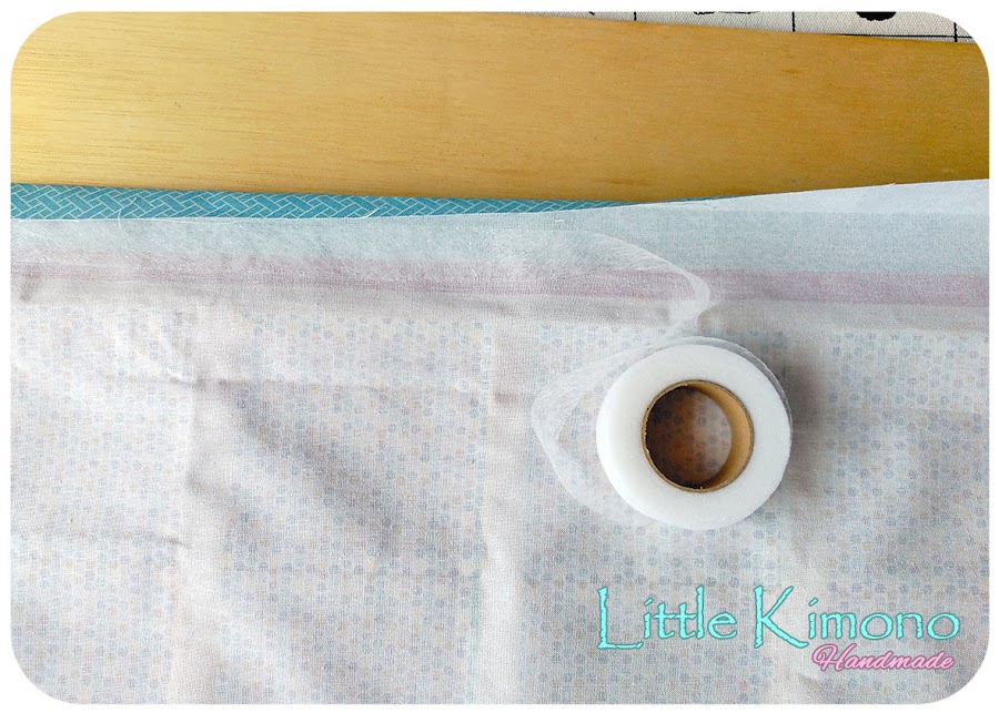 8. Ahora hacemos el dobladillo del panel base a unos 2cm, podemos coserlo o usar fliselina termoadhesiva.