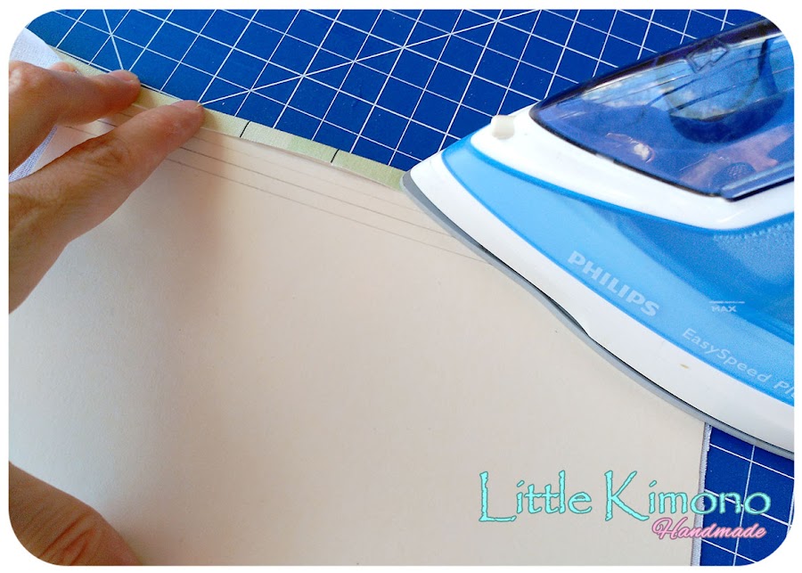 Colocamos el borde de la tela, doblamos a la medida que deseamos y planchamos ;)