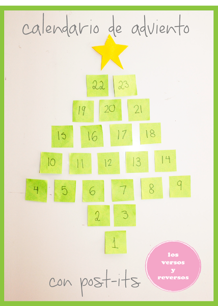 Mira que original queda este calendario de adviento que hemos hecho con Post-Its !! Es sencillo para hacer con niños y queda muy bien…nosotros lo pusimos en el refrigerador.