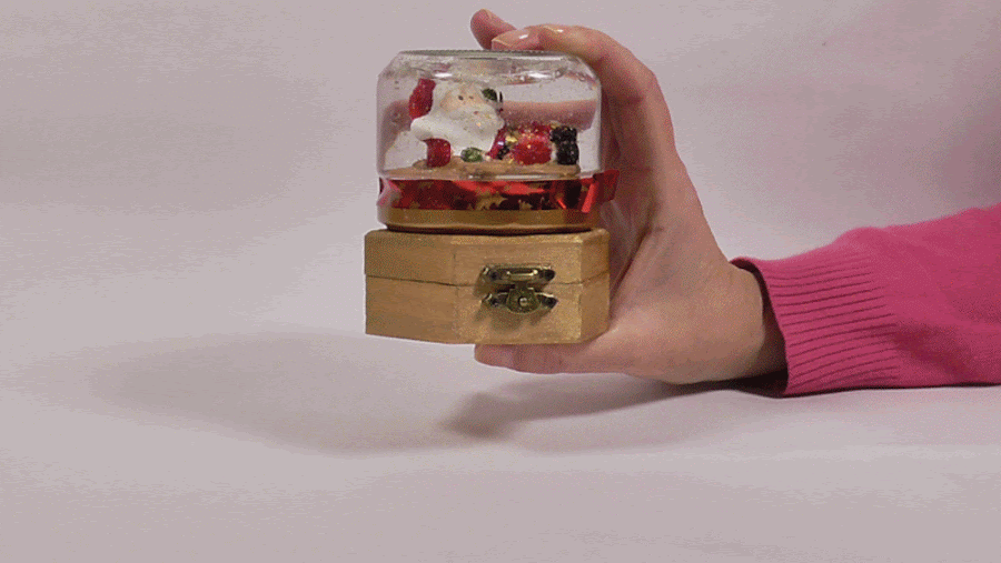 Con agua destilada, para que el agua no se pudra, purpurina y nieve se puede conseguir un efecto muy auténtico de la navidad. Unos toques de adornos en el interior y un lazo decorando la tapa pueden rematar el trabajo.