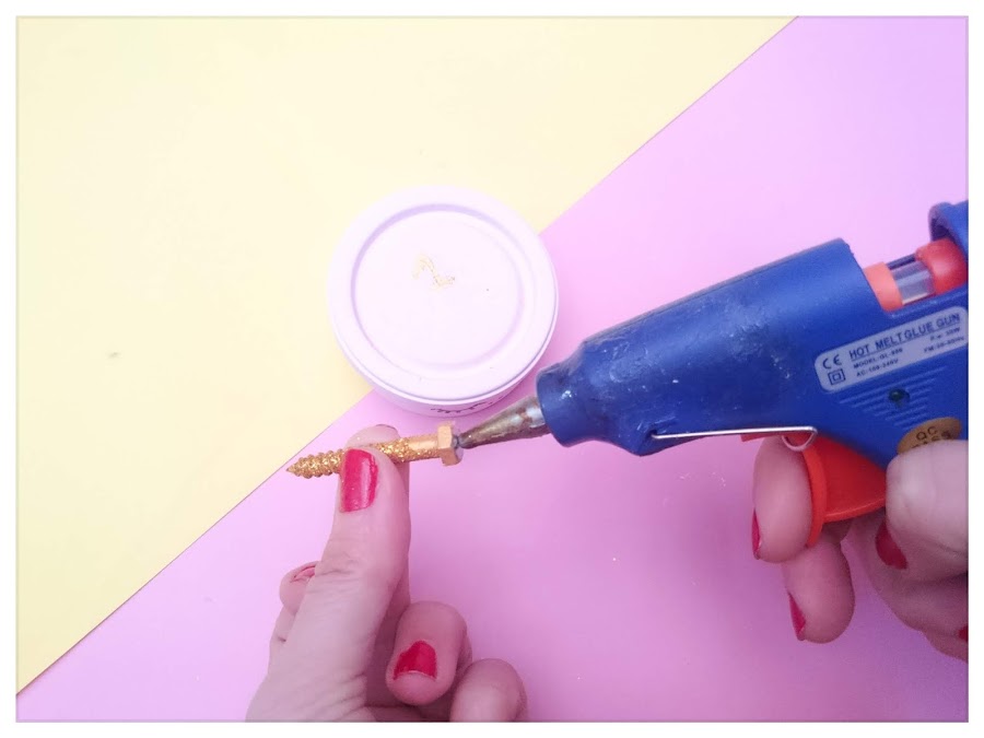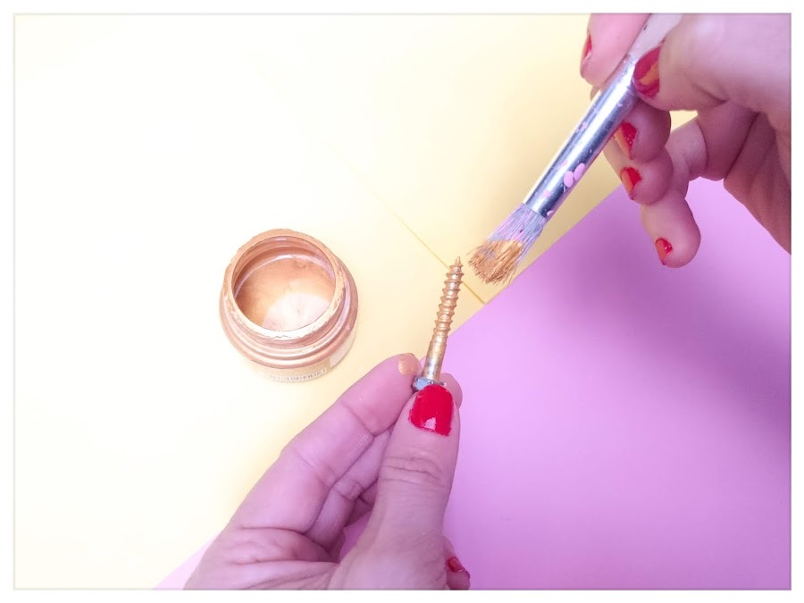 Segundo paso, pintar los tornillos con la pintura dorada.