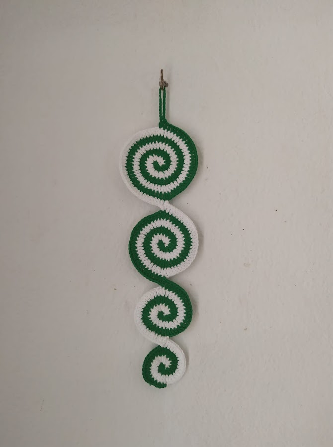 El colgador queda chulísimo para decorar pero, como digo en el vídeo, también se pueden hacer posavasos y bajoplatos para estas fiestas genial. Vamos a hacer muchas espirales para hipnotizar a tus invitados.