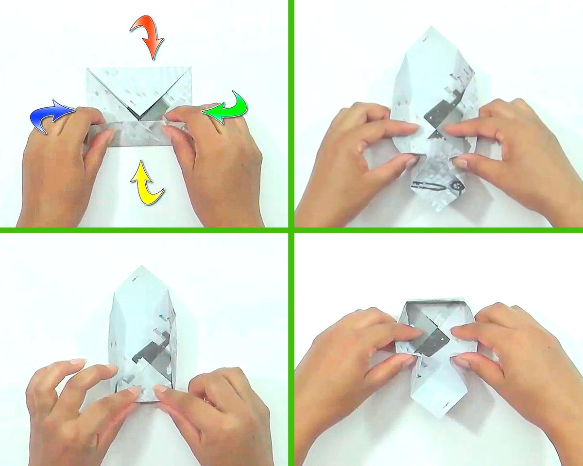 La pestaña que te queda, dóblala hacia adentro y se forma el lateral.
