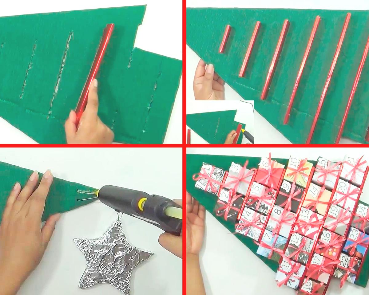 Dobla las punta y pon silicona caliente y tápalo con una estrella de cartón forrada con papel aluminio. ¡Y LISTO!