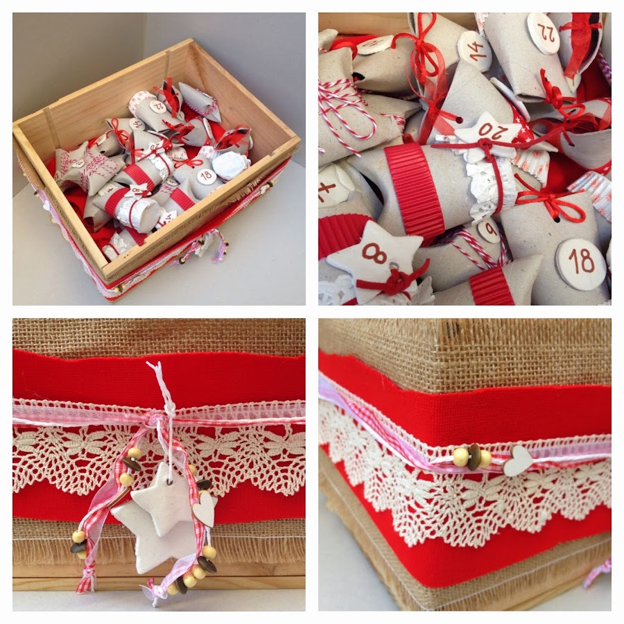 Solo faltaba decorar con una cinta muy navideña y unas estrellas de arcilla blanca, como en los números de los paquetitos.