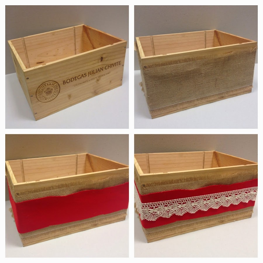 Una caja de vinos, unas telas, cintas, puntilla y los tubos de cartón del papel higiénico...Ya sabeis que los suelo guardar!!!