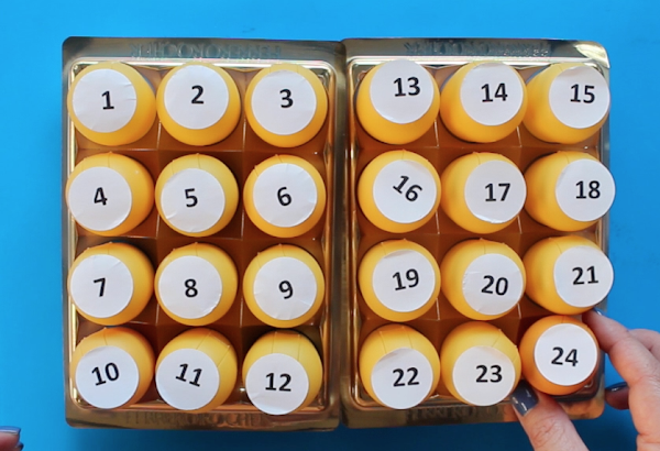 Coloca los huevitos en las bandejas en orden numérico dejando al último el número 24.