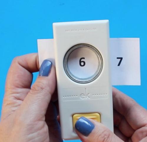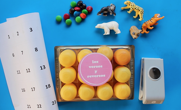Con la perforadora, corta cada uno de los números y en la parte superior de cada huevito, pega cada etiqueta.