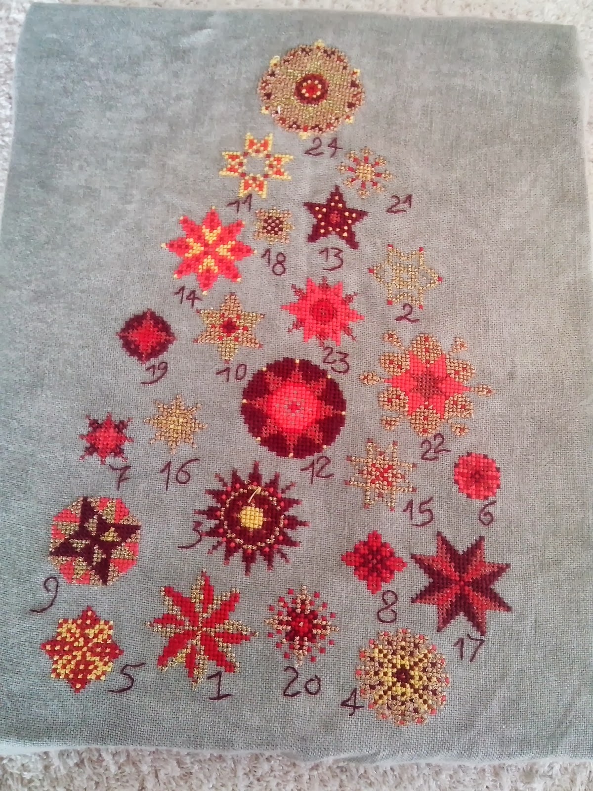 Resulta un poco raro el último día de septiembre ver un post que "huele" a Navidad. Pero hay que ir preparando con antelación estas fechas. Y como, además, lo que os presento es un calendario de Adviento que se empieza a utilizar antes pues hay que ser más precavido para conseguirlo. Este "árbol-calendario" está realizado con hilos de algodón y metalizados de DMC por lo que le da el toque de brillo que requieren estas fechas tan señaladas.