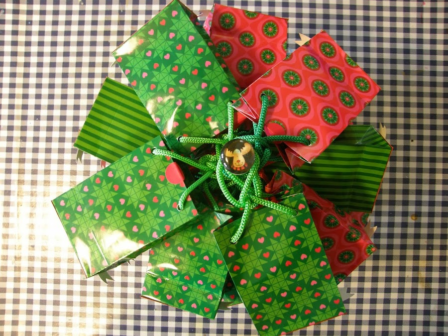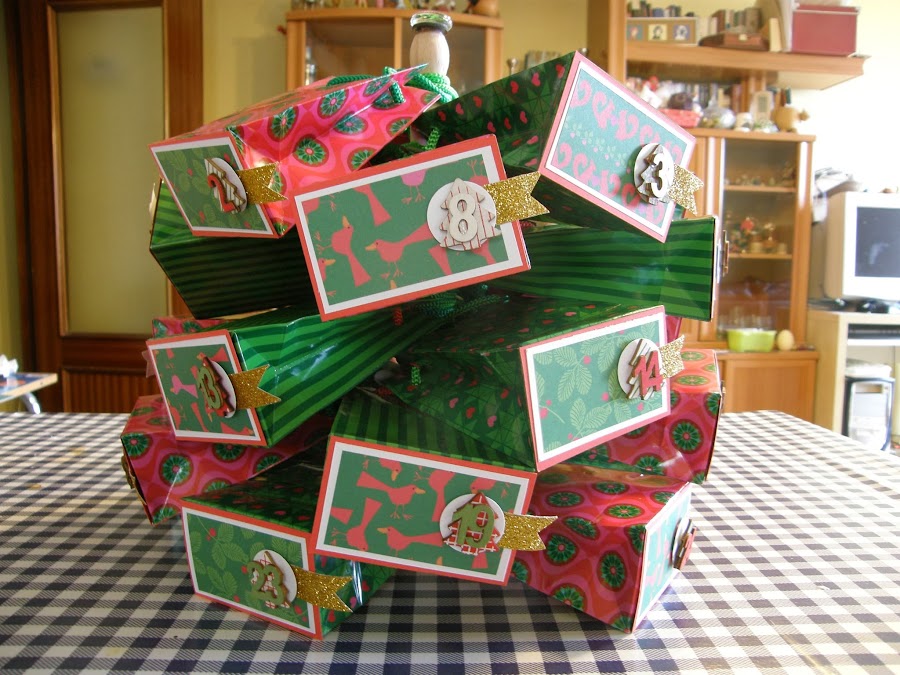 Y eso es todo, bueno esta relleno de sorpresitas y chocolates, para tapar un `poco la sorpresa papel de seda rojo arrugado y ahora a esperar al 1 de diciembre.......
