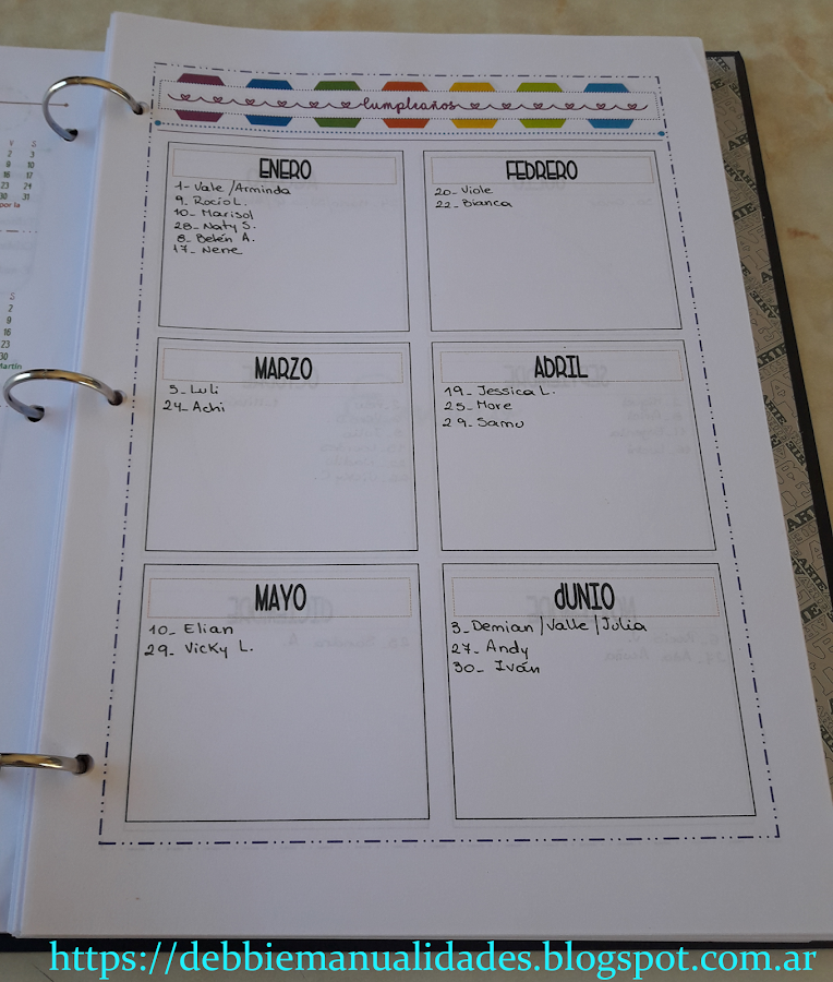 Hoy vengo a traerles otras hojitas para descargar; son las del calendario de cumpleaños que tiene la agenda que les mostré en esta entrada.
