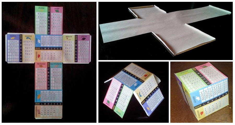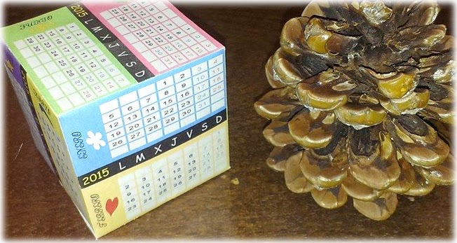 Y a continuación podéis ver el resultado. El que se ve en la imagen se ha realizado en papel reciclado, pero si se hubiese impreso sobre cartulina blanca habrían quedado mejor tanto el color como la rigidez final de nuestro cubo - calendario. ¿Os gusta?