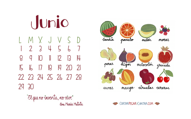 Ana, mi queridísima Ana de A Sweet Winter también ha hecho un calendario para este mes de junio, y en este caso ha dejado las frutitas para plasmar un solazo de los bien grandes!