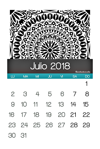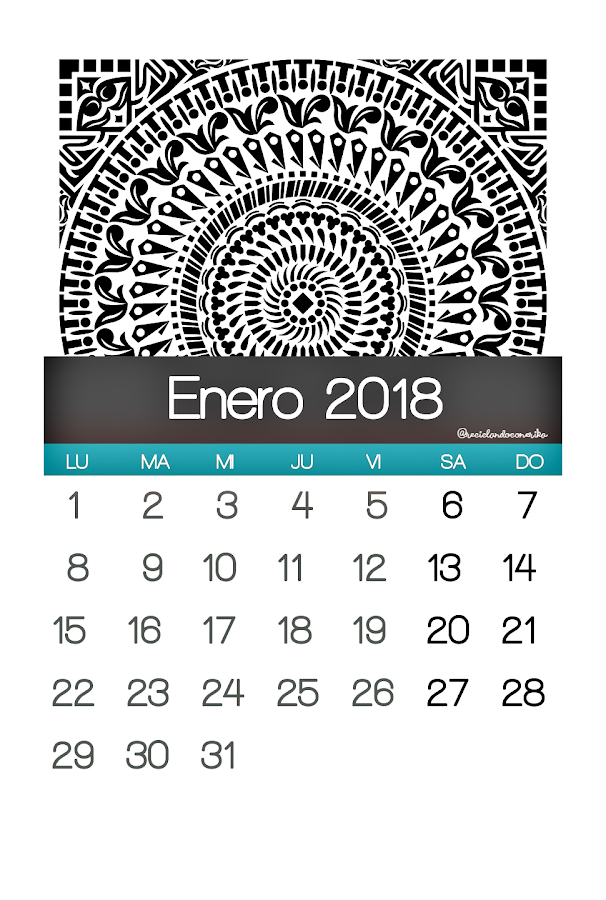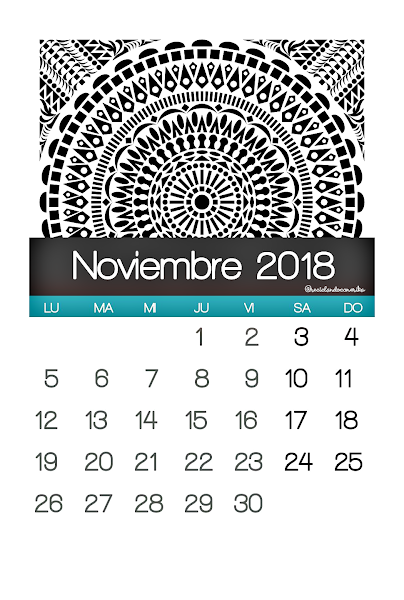 A petición de cientos de seguidores del blog reciclando con erika he preparado un lindo regalo para todos como un agradecimiento por siempre seguir las redes sociales :) es un precioso mandalar con todos los meses del año 2,018 incluidos con espacios amplios y en cada mes una bella Mandala