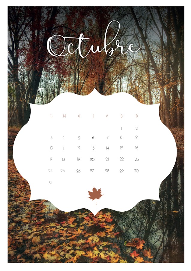 Organiza bien tus días con un calendario que destaca lo más bonito de esta temporada del año: los colores de otoño. En esta ocasión y para no estropear la foto que he elegido he tenido que hacer solamente una versión del calendario, podéis descargarla e imprimirla para un folio en A4 en vertical en el link bajo la imagen: