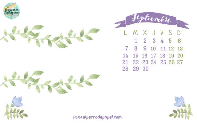 El Perro de Papel también ha creado su propia versión para el calendario de Septiembre, y para mi es muy muy cuqui, con sus flores tipo acuarela.
