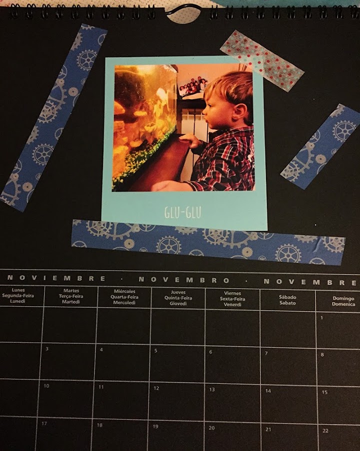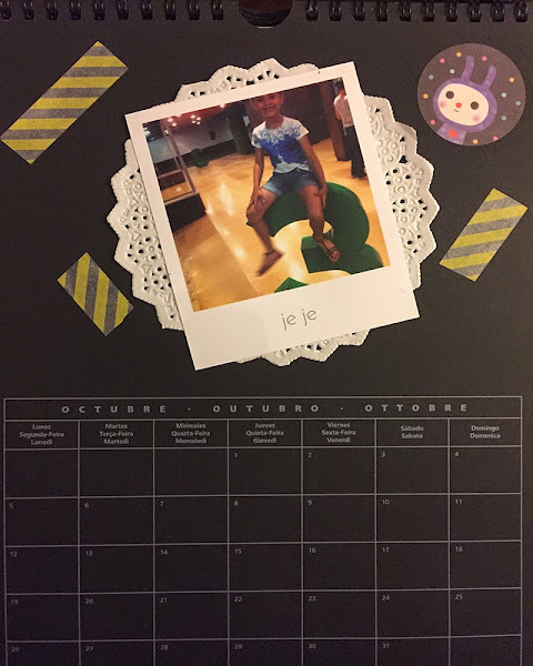 Todos los meses de este calendario están decorados con washitape, en el mes de octubre pusimos una oblea blanca y este gracioso muñeco, pegatinas de SOUFFLE, me encanta esta tienda, tienen de todo y Bea es un encanto, se lo curra bastante para tener en la tienda las ultimas novedades del momento y ella te ayuda en todo lo que necesites.