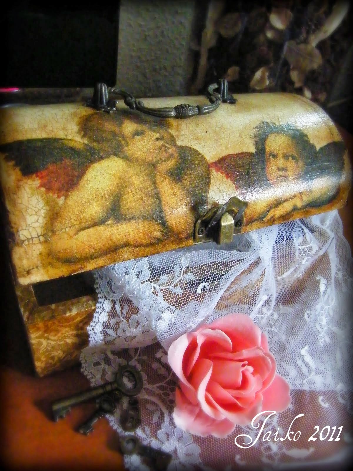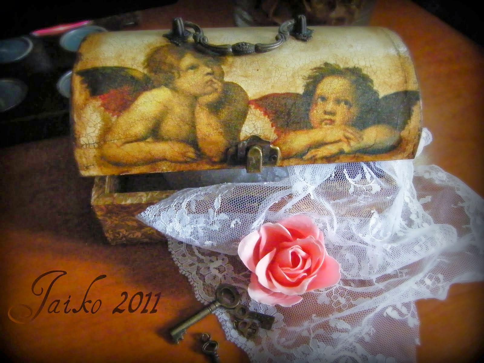 No hace mucho vi una cajita de madera y l@s que me seguis ya sabeis que es un vicio, la madera.. no me puedo resistir, y si encima tienen algun elemento que me llame la atencion... pues eso, que se viene conmigo a casita.
