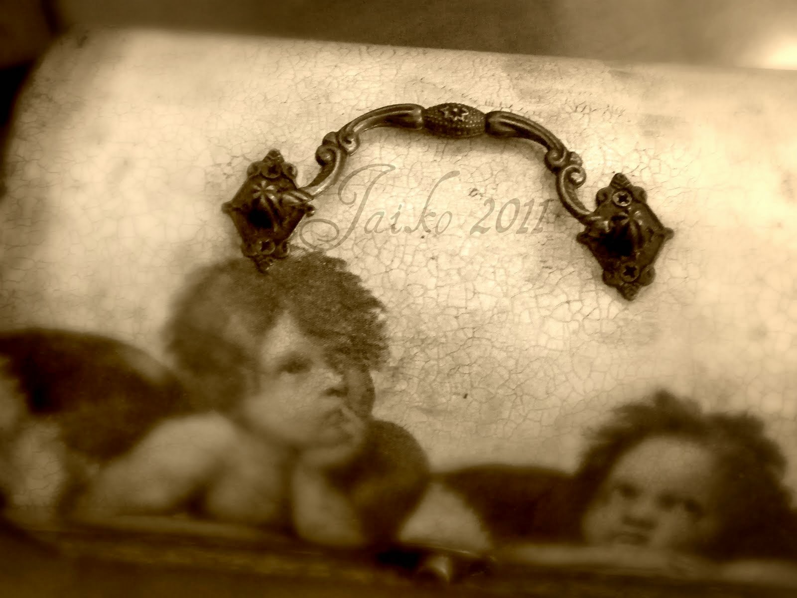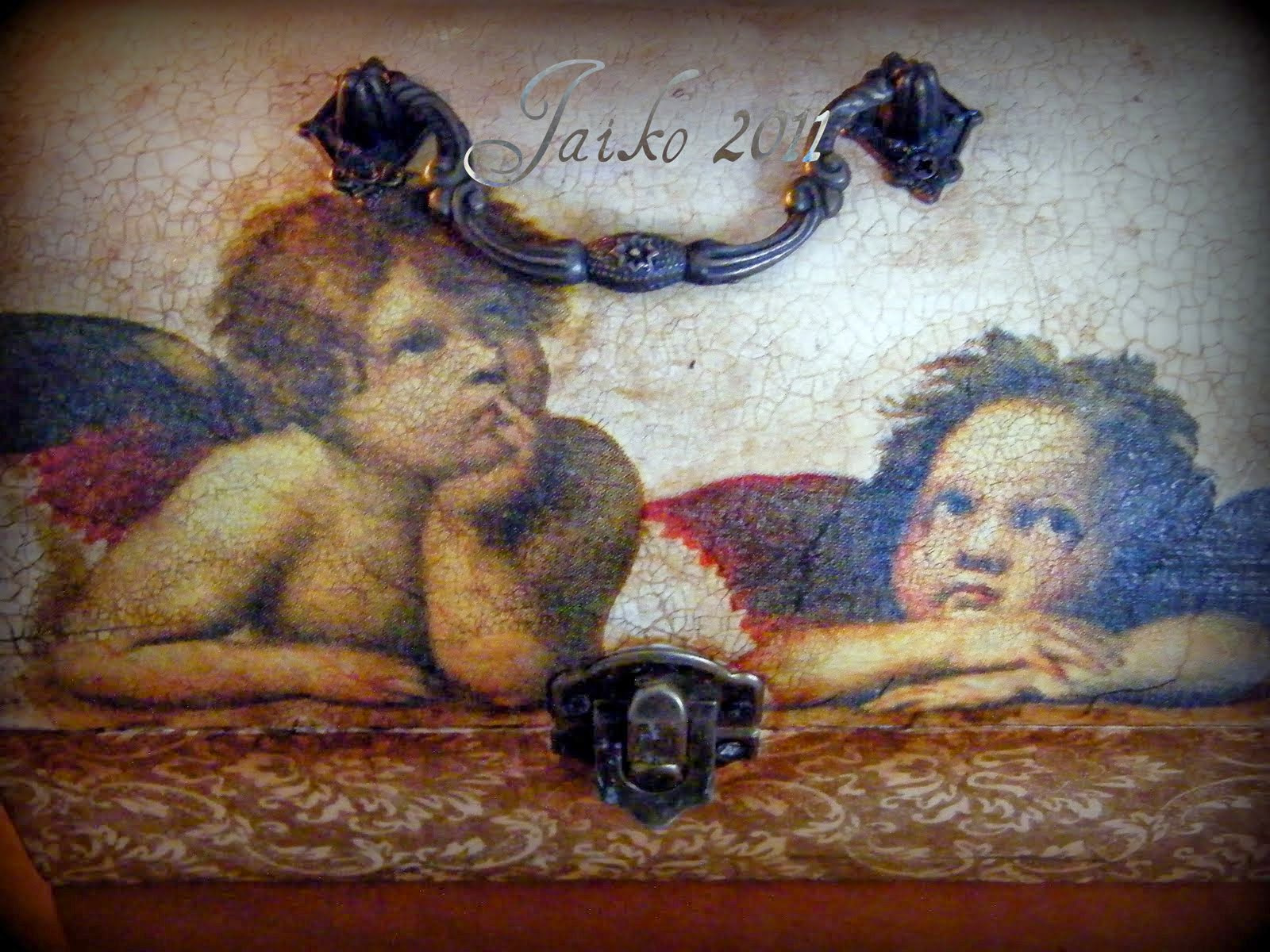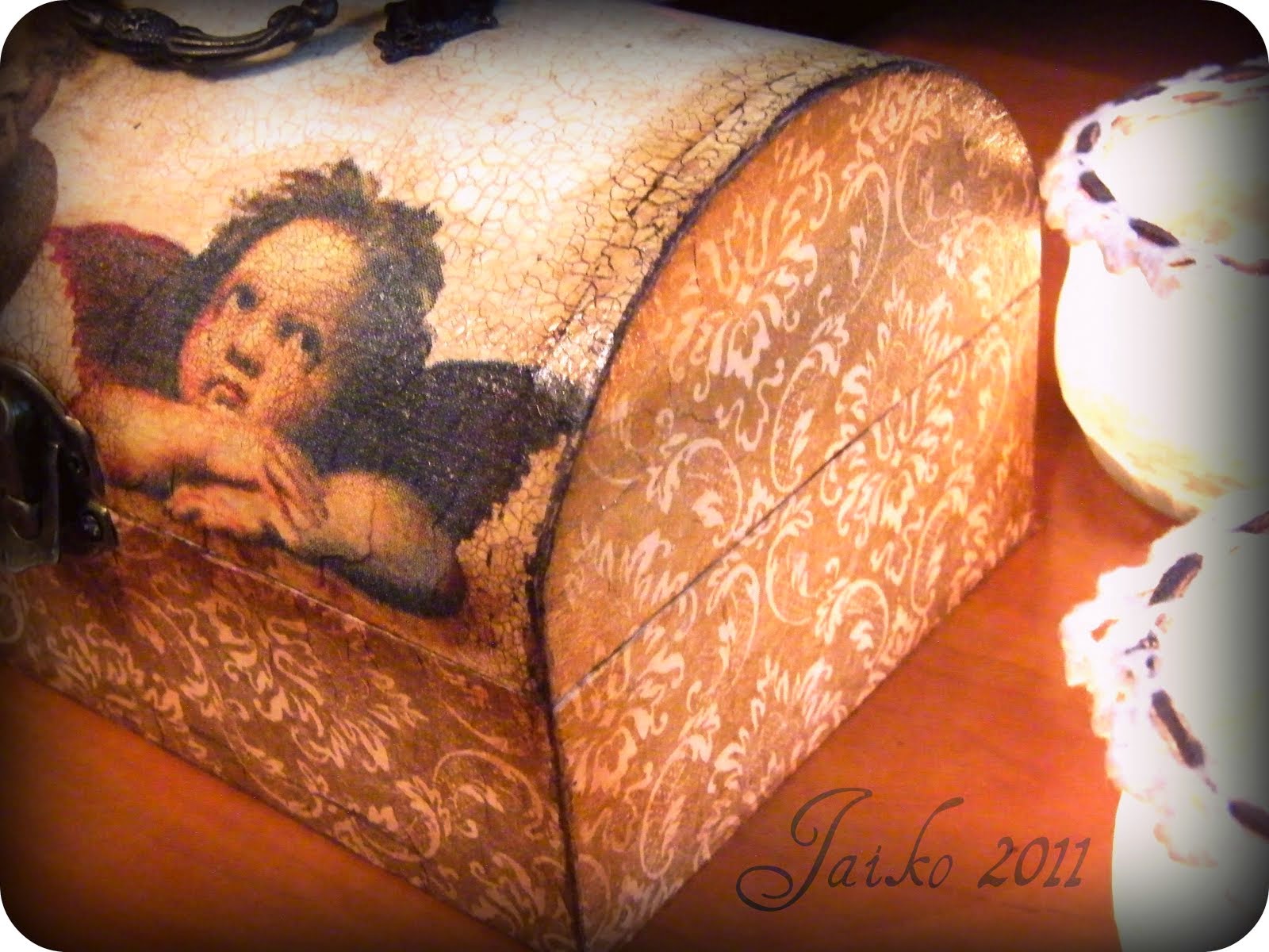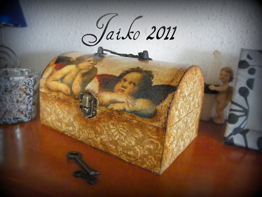 ...y retomando proyectos, ya es tiempo, ya esta aqui septiembre, vuelta a la normalidad, a las rutinas, al día a día, ese que a mi tanto me gusta y que necesito, ...para mi es como volver al refugio, a sentirme arropada y protegida por las cuatro paredes de mi casa... Y entre esas cosas está una que me relaja y consigue absorberme por completo, ya sabeis, uno de mis pasatiempos favoritos, cambiar la imagen a las cosas mediante el decoupage. - Envejecer lo que esta recien comprado? pues vaya... dice mi hijo, y tiene razón...peeero, a otros les da por hacerse agujeros en la oreja (que tambien..) pero es lo que hay jajajajja.