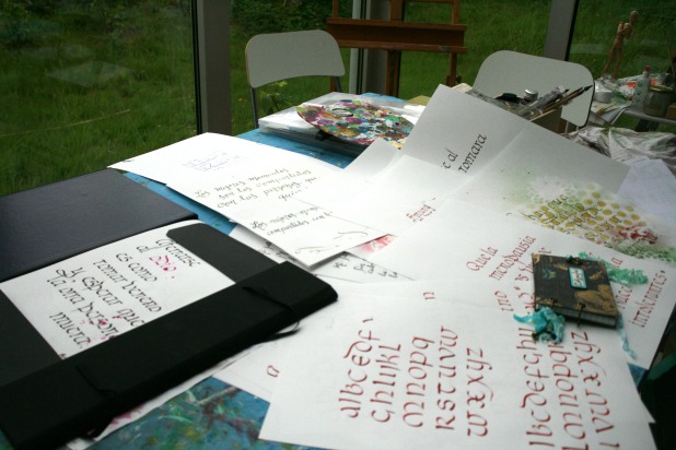 Y hace cosa de un par de semestres, me anoté a un curso de caligrafía! déle que déle, con un sólo propósito, lograr escribir "uncial" de manera casi-automática. Ya lo sabían los copistas desde el medioevo, no sólo es tener buena caligrafía, hay que desarrollar también las capacidades de: