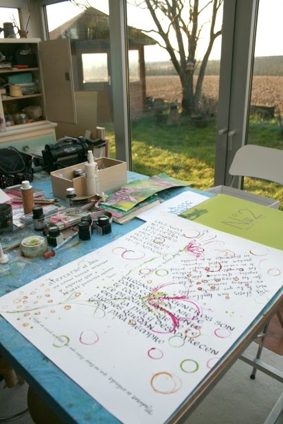 Quedarme mirando las letras tan lindas en algunos blogs, en pinterest etc. y chorreando la baba, no me ayudaba! había que pasar a la acción. La motivación mia empezó en ese curso, terminé el primer dia con la mano adolorida pero feliz, alli mismo me compré un blog muy grande y algunas tintas, luego en la misma semana me fuí por más plumillas, más colores, y empecé a PrACtiCaR!