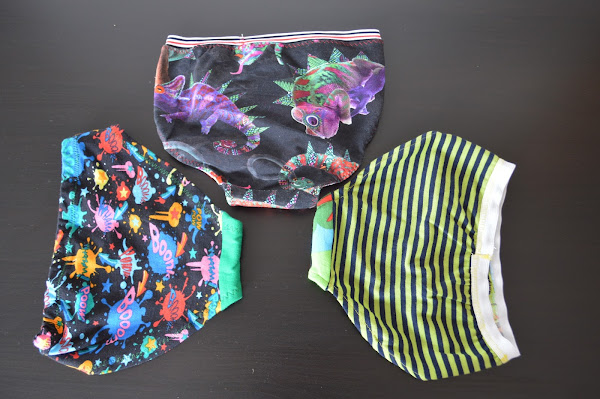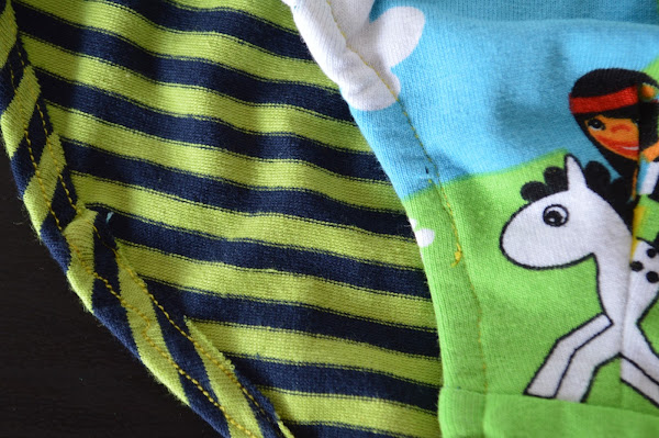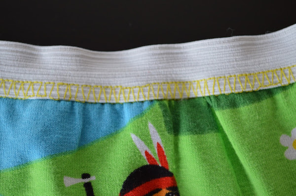 Y la última versión 3 Indios. Es la que más se acerca a cómo Ottobre los cose. Elástico exterior, pero cosido directamente, he quitado de cinturilla unos centímetros para que no fueran tan altos. En las perneras elástico cosido por revés y doblado hacia dentro para que no se vea. Y las costuras laterales con plana.