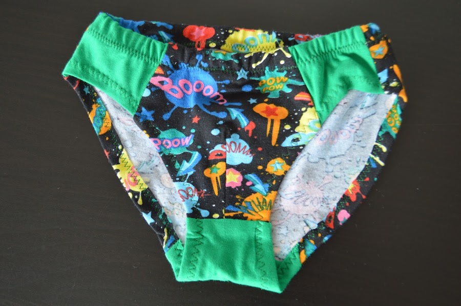 La versión 2 de booomm, cosida también con over, pero esta vez para que no quedaran sobaqueros, la cinturilla la he hecho con el elástico en el interior. En las perneras solo dobladillo sin elástico. No se si se le meterán por el culete.