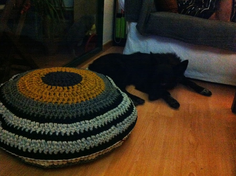 Como siempre, es una labor muy sencilla y relativamente rápida de hacer. Además, es muy práctica pues te ahorras el tener que comprar una cama a tu perro y puedes hacerla a tu gusto (en mi caso, al gusto de mi perro...)