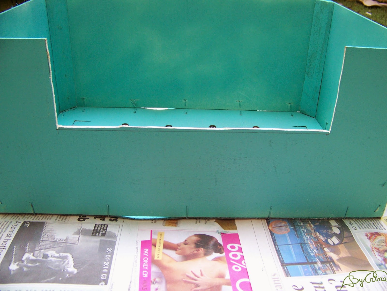 La verdad es que nunca había hecho algo así, jamás había pintado nada con spray (tuve mi momento de grafitera jaja), aunque he de reconocer que usar esa forma de pintura tiene sus ventajas y desventajas. Hay que ir con cuidado e intentar no respirar todo lo que suelta el frasco (por eso os decía lo de la mascara) y tienes que tener cuidado con las superficies en las cuales pintas, porque no controlas como cuando usas una brocha. A su favor he de decir que ahorras muuuuuuuuuchooooo tiempo, ya que en dar una capa tardas 10 minutos.