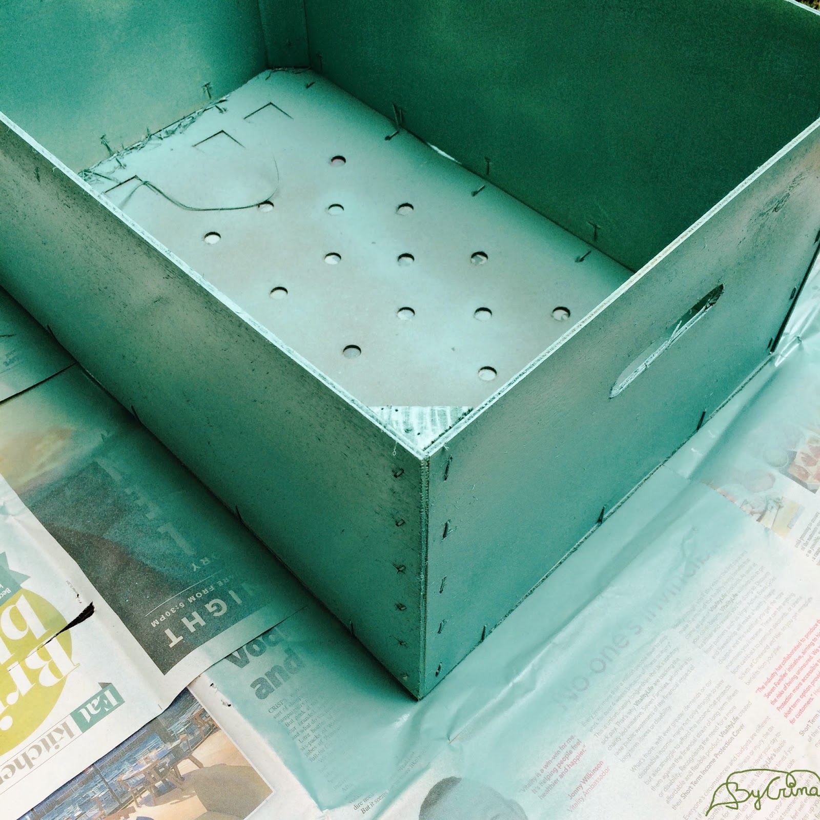 To start we need: a crate, a sprayer paint and a newspaper to place it under the box to keep everything clean.