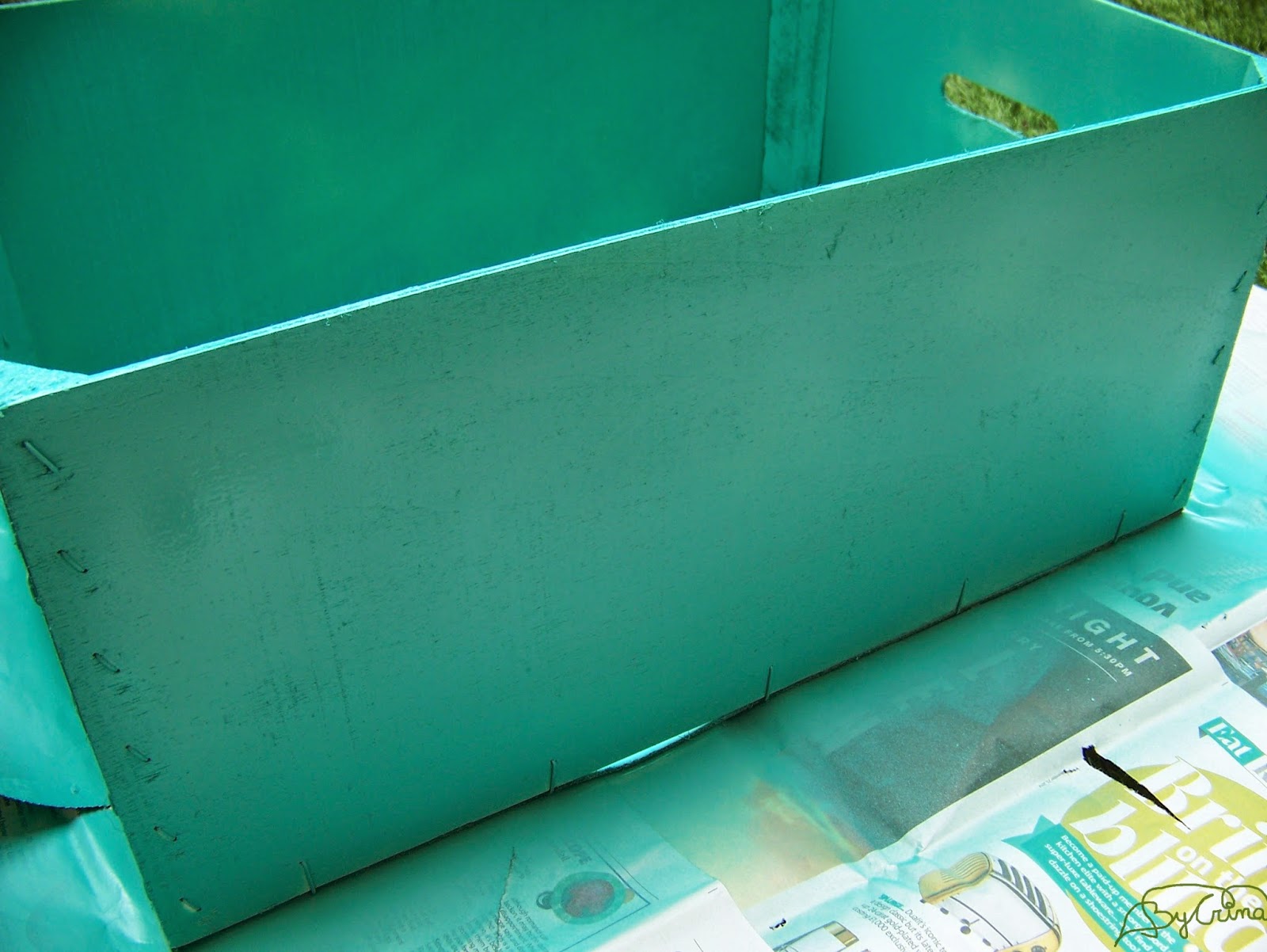Para empezar necesitamos: una caja, si es de madera mucho mejor, pero pueden ser de cartón duro, un bote de pintura del color que más os guste, yo escogí un azul turquesa mate y un periódico que usaremos para colocar debajo de la caja para no ensuciar demasiado.